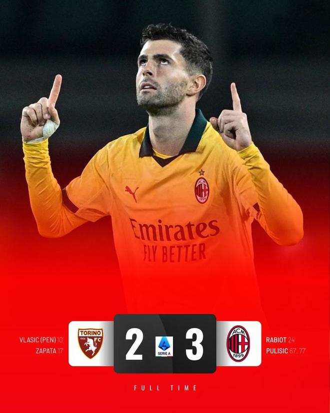当然,更重要的就是普利西奇了。下半场第67分钟普利西奇替补出战之后,给米兰的边路优势带来了巨大的帮助,先是萨勒马克尔斯传中之后第一点落下来,普利希奇轻松推射得手,帮助米兰扳平比分。10分钟之后又是一次右路的进攻,通过里奇的下底传中,普利西奇包抄完成的破门,进而反超了比分,米兰3:2领先,都灵很气馁却真的拿他没啥办法的。